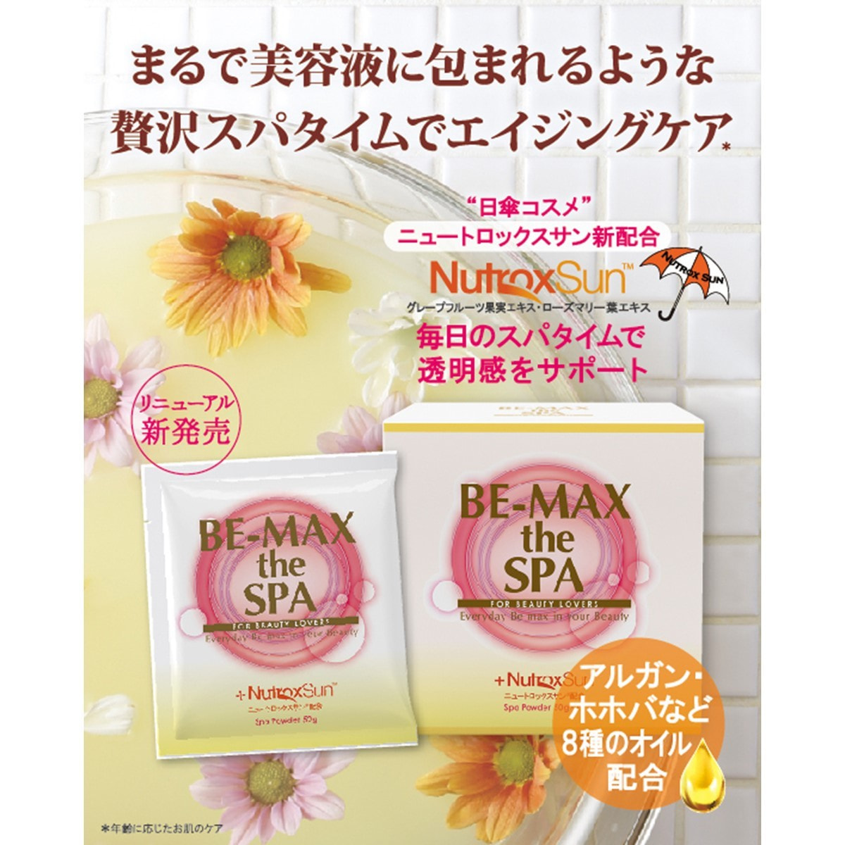 新配合 「ニュートロックスサン®」をはじめ、日本で古くから親しまれている8種の和漢植物エキスがカラダをやさしく温め、ラグジュアリーなスパエステを実現します。