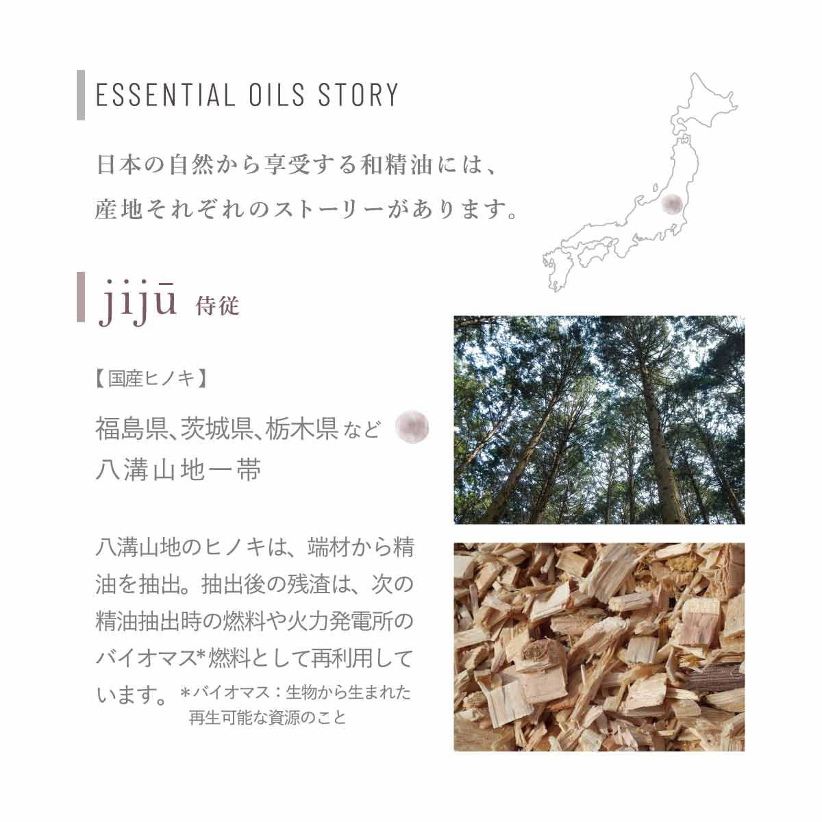 海塩、ウンシュウミカン果皮※、ヒノキ※、スクロース、ホホバ種子油、ウンシュウミカン果皮エキス、トウキ根エキス、ケイ酸Ca、エタノール、水、BG、ヒノキ木油※、カナリヤノキ樹脂油※、ボスウェリアネグレクタ樹脂油※、ラベンダー花/葉/茎油※、ビャクダン油※、ベチベル根油※、パチョリ葉油※、ビターオレンジ花油※ (※香り成分)